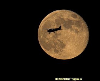 A full moon shines over a cloud bank above the Van Nuys Airport where Cessnas and Pipers make night landings like carefree grackles.
